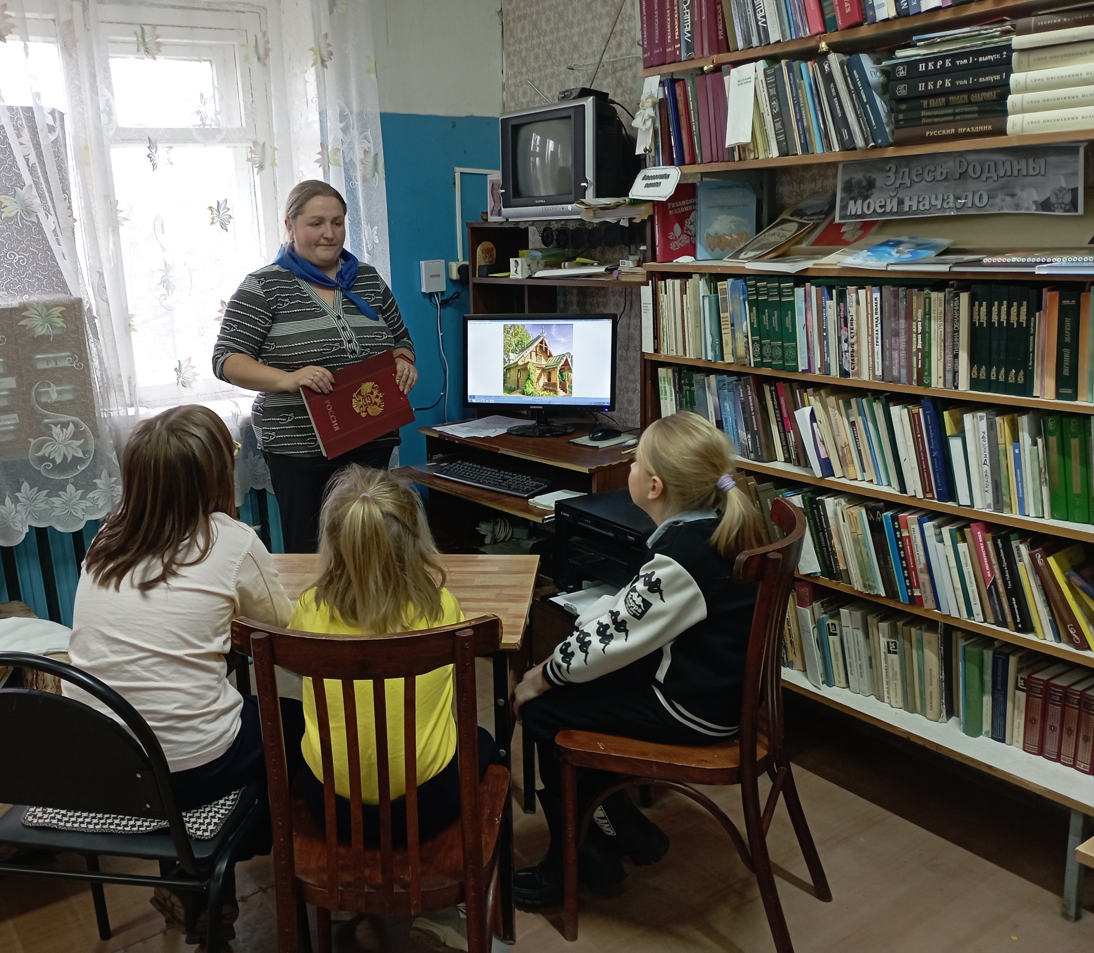 Сотрудник библиотеки провела для школьников познавательную программу «Русь традициями славиться». Ребят познакомили с особенностями уклада жизни, традициями и обычаями русского народа. Гости с большим интересом слушали о истории избы, кухонной утвари, игрушках и играх. В завершении программы из бумаги сделали чайники и кружки.